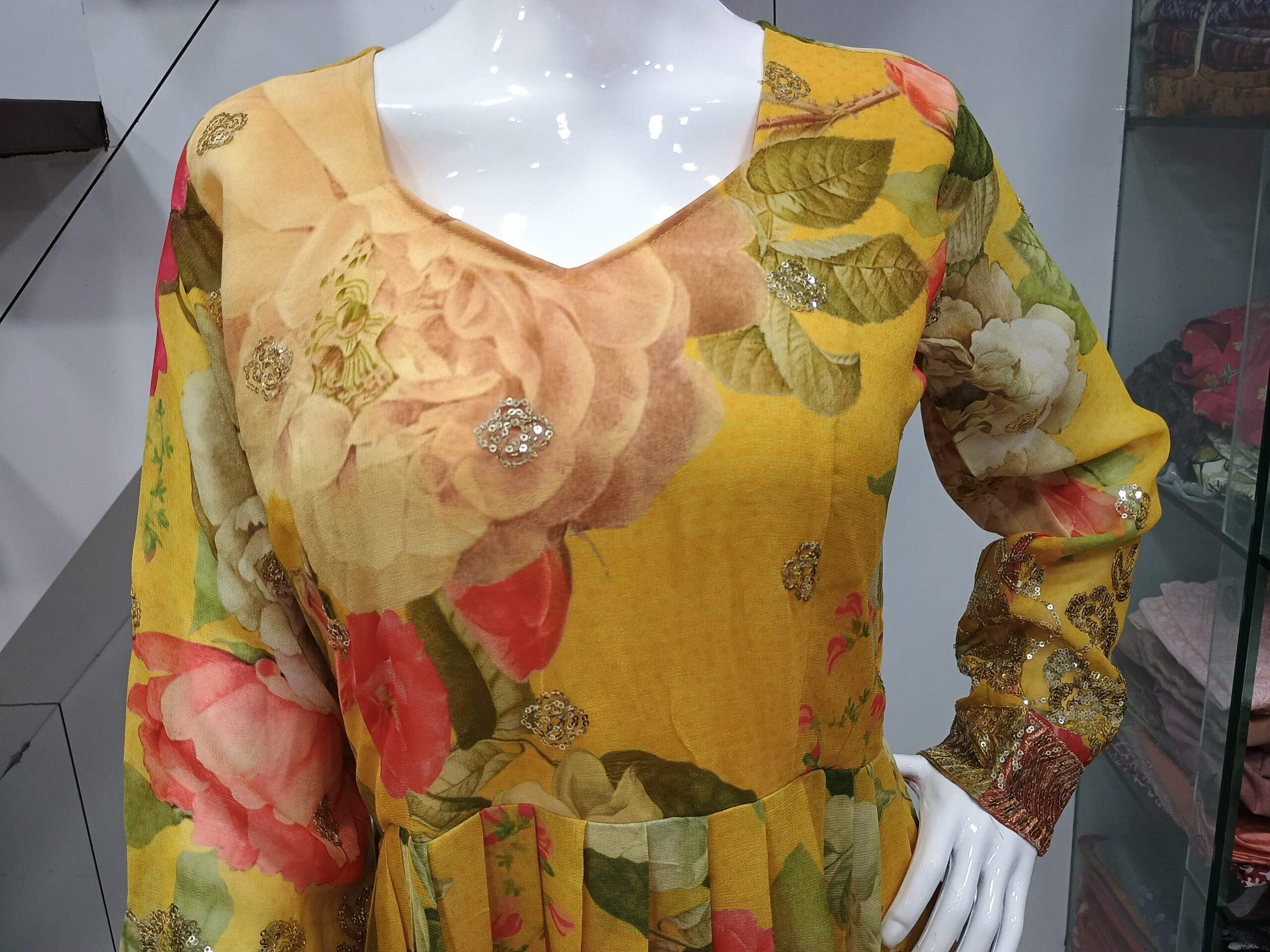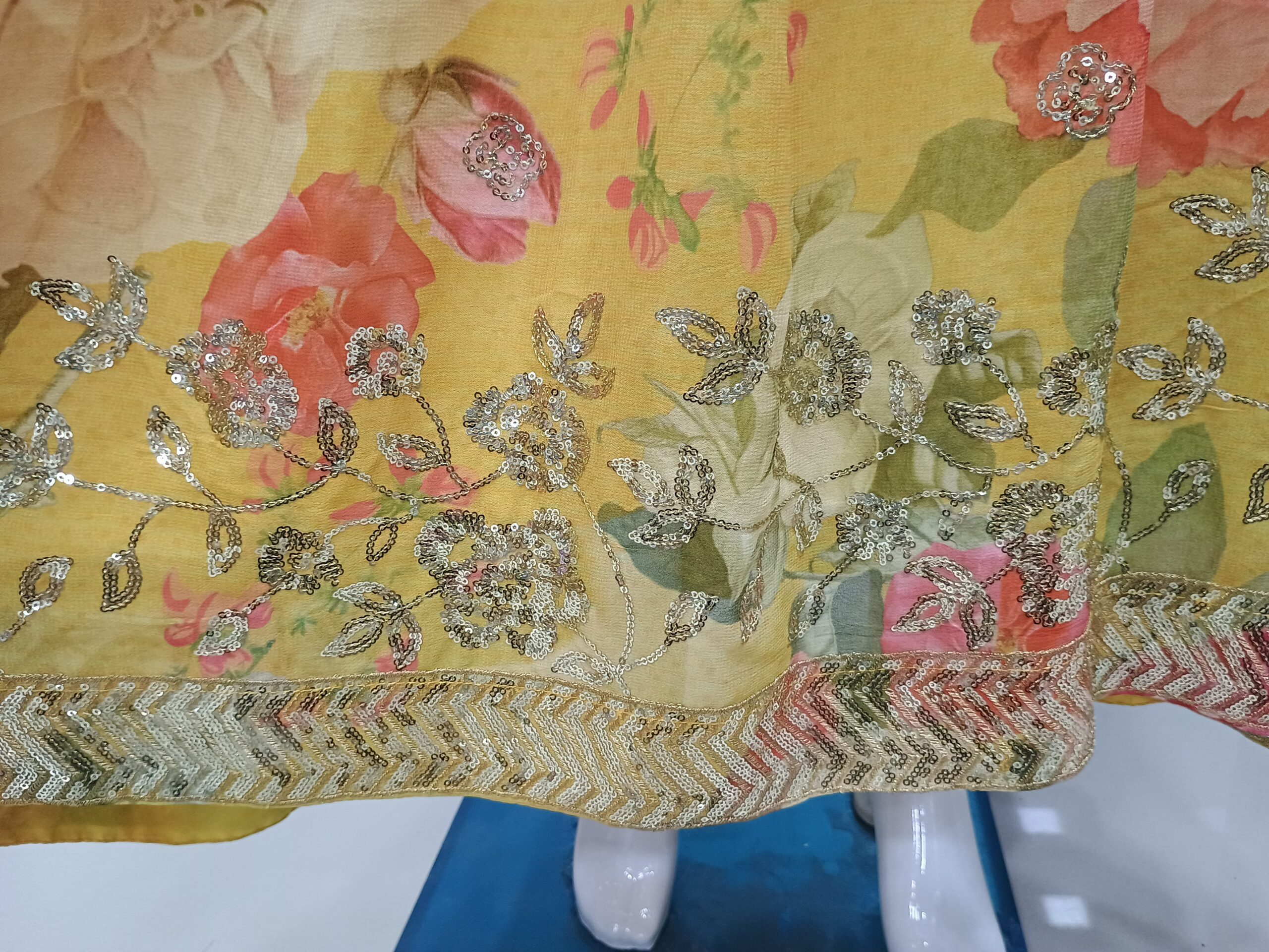 Pure Chinon Gown with Daman Sequence work